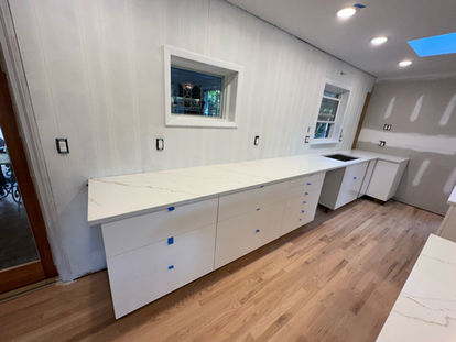 Calacatta Horizon Quartz is a breathtaking surface that exudes elegance through its crisp white background and striking veining. Soft yet defined, the veins range from warm golden hues to subtle earthy browns, weaving naturally across the slab in an organic, fluid motion. These intricate patterns create a sense of depth and movement, reminiscent of fine Italian marble but with the superior durability of quartz.