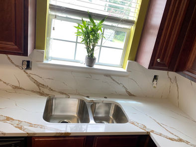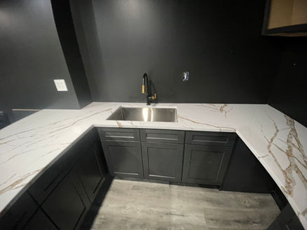 The Rustic Gold Quartz slab features a stark white background, creating a clean and elegant canvas that allows its dramatic veining to take center stage. Wide, flowing gold veins branch across the surface in an organic, intricate pattern, evoking the look of a dense forest from an aerial perspective. The contrast between the bright white and the rich, warm gold tones gives the quartz a luxurious yet natural aesthetic, making it a perfect choice for a statement kitchen island, countertops, or accent pieces. The polished finish enhances its depth, adding a luminous quality that catches the light beautifully.